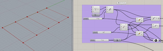 短手の梁は、長手の梁を DivideCurve コンポーネントでスパン分だけ分割した点を作成し、それをつなげることで作成します。