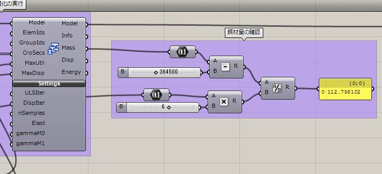 このコンポーネントは、設定した断面範囲内で、設定したクライテリアに合致する断面を最適化により設定してくれるものです。