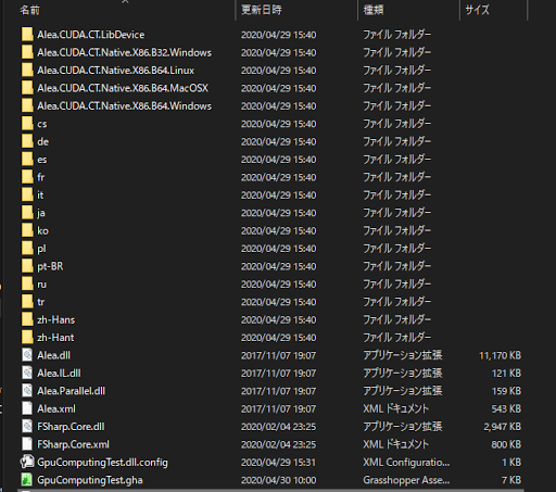 この中で Alea.CUDA.CT.LibDevice から FSharp.Core.xml までを C:\Program Files\Rhino 6\System 内に入れます。