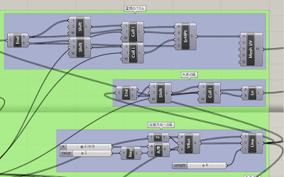 もとのキャノピーは柱頭ピンですが、フリーの Karamba3D では梁端の回転剛性を指定できないため、ModifyElement コンポーネントを使ってトラス要素として両端ピンにしています。 このせいでなんだかちょっと違う気がしますが、取り合えずということで。