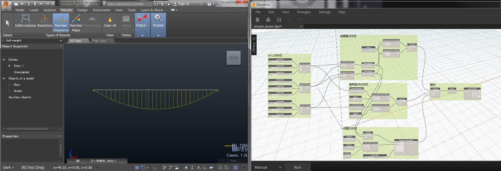 Autodesk の Dynamo BIM と最近開発されている ReactStructures を使用して単純梁のモデル化から解析までの一連の解説を行います。