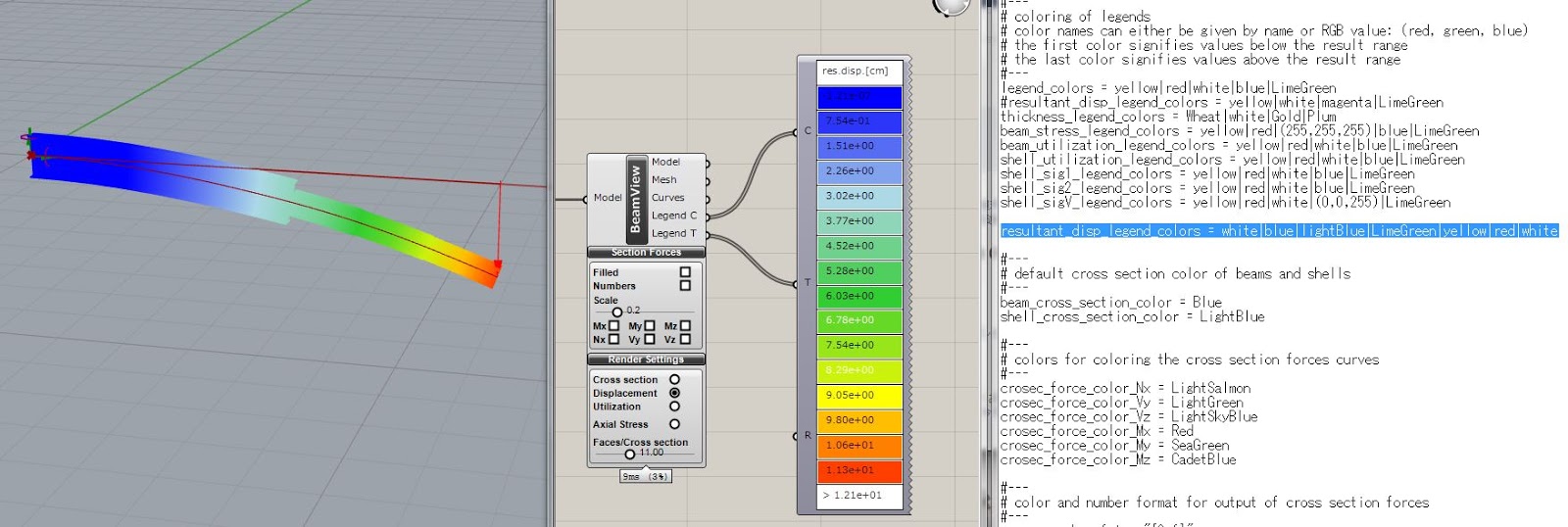 ここでは断面力の出力の値の数字のフォーマットと、色を設定しています。